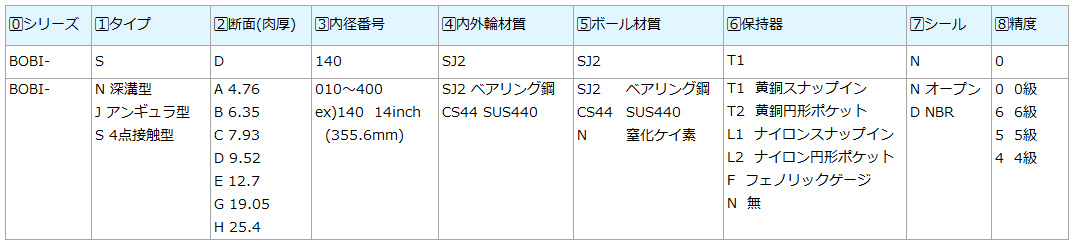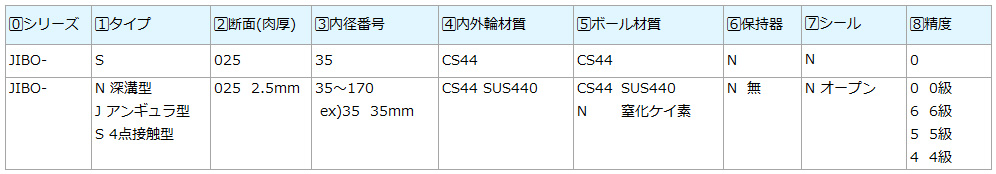 | ベアリングタイプ | 深溝型 / アンギュラコンタクト型 / 4点接触型 |